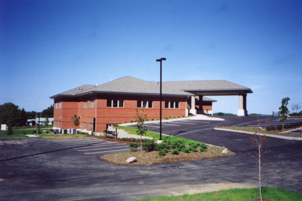 This building, recently completed, has a brick masonry facade and a shingled hipped roof. The two story structure is set into a sloping site, so that the main entrance is on the upper level. The prominent corner of the site features a semi-circular form with stepped glazing to match the shape of the roof. The interior is laid out to accommodate a flexible number of suites, though ideally there would be three or four on each level. The programmatic concept is for several different specialists to be housed under one roof, providing a full service medical facility in a single location.